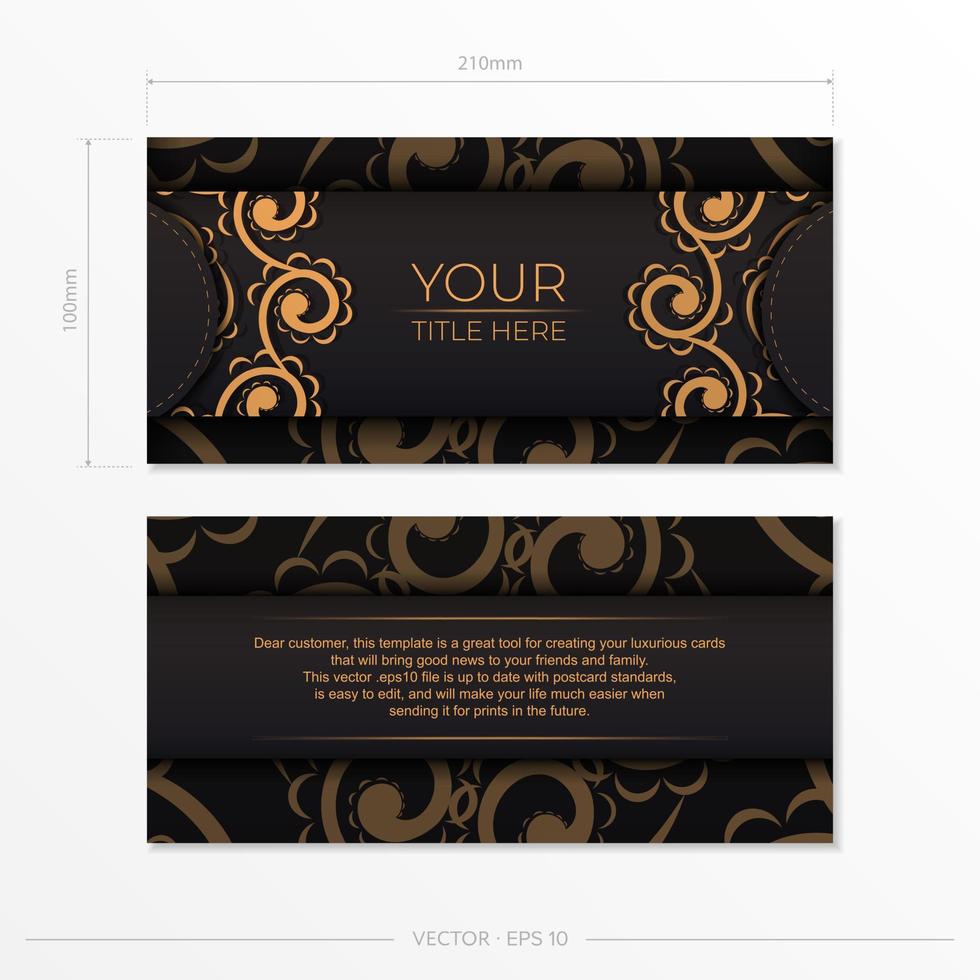 Two black and gold business cards with ornate patterns Pro Vector