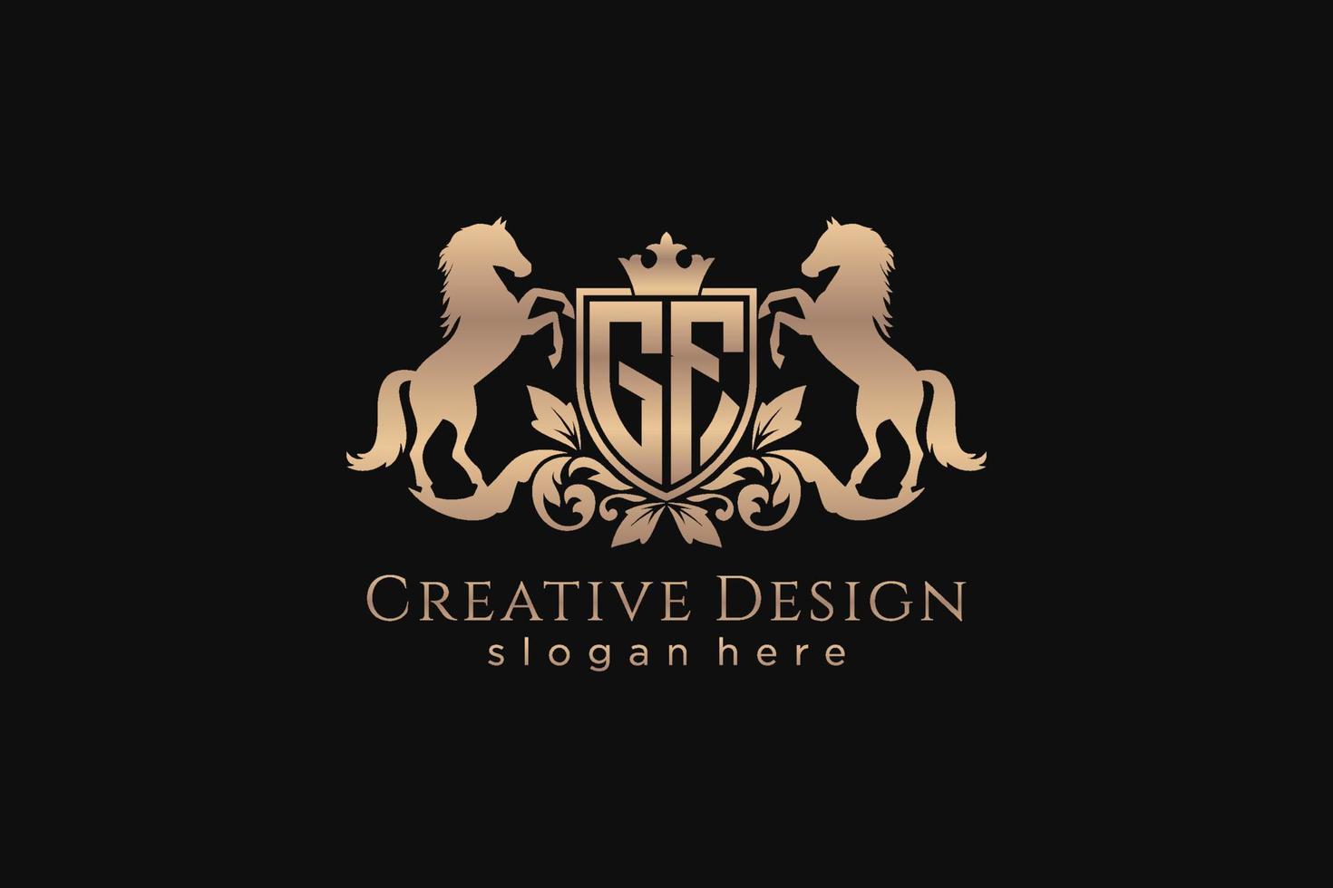 initial GF Retro golden crest with shield and two horses, badge template with scrolls and royal crown - perfect for luxurious branding projects Pro Vector and Pro SVG