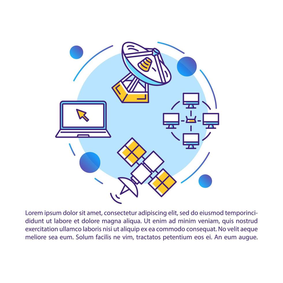 Telecommunication article page vector template. Global network. Brochure, magazine, booklet design element with linear icons and text boxes. Print design. Concept illustrations with text space Pro Vector