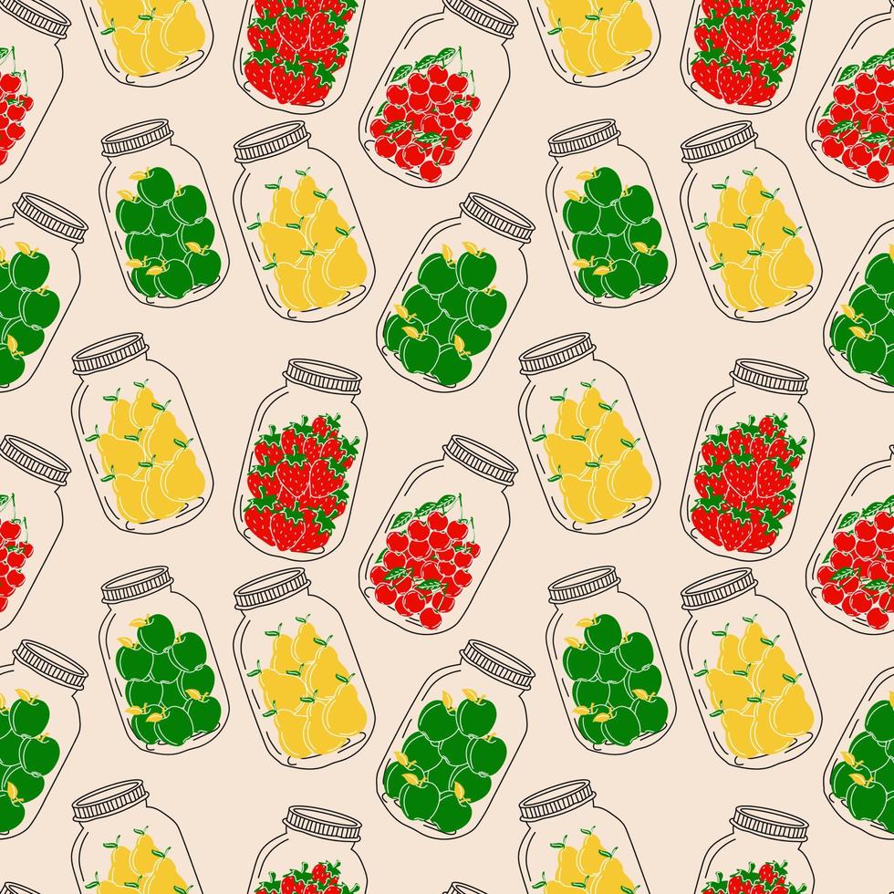 Seamless pattern with set of jars with Fruit. Compote. Vector in cartoon style. Pro Vector