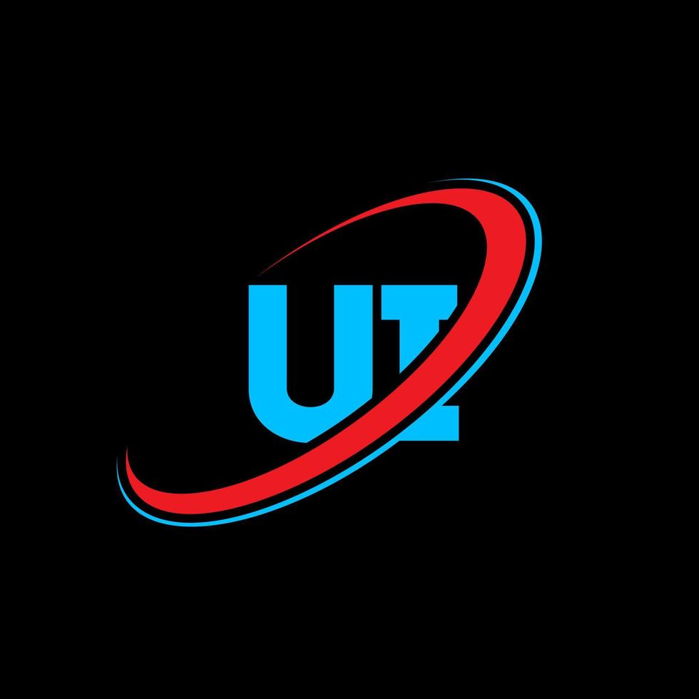 UI U I letter logo design. Initial letter UI linked circle uppercase monogram logo red and blue. UI logo, U I design. ui, u i Pro Vector