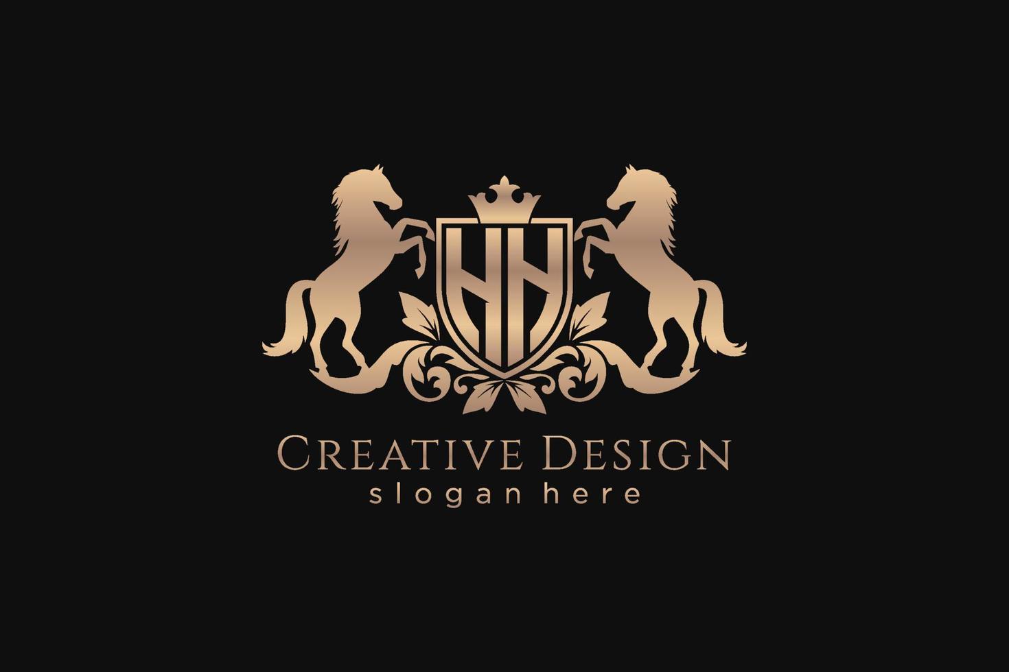 initial HH Retro golden crest with shield and two horses, badge template with scrolls and royal crown - perfect for luxurious branding projects Pro Vector and Pro SVG