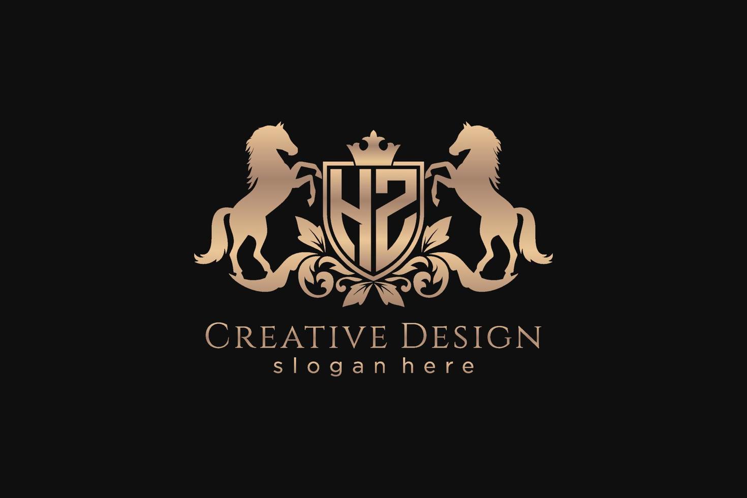 initial HZ Retro golden crest with shield and two horses, badge template with scrolls and royal crown - perfect for luxurious branding projects Pro Vector and Pro SVG