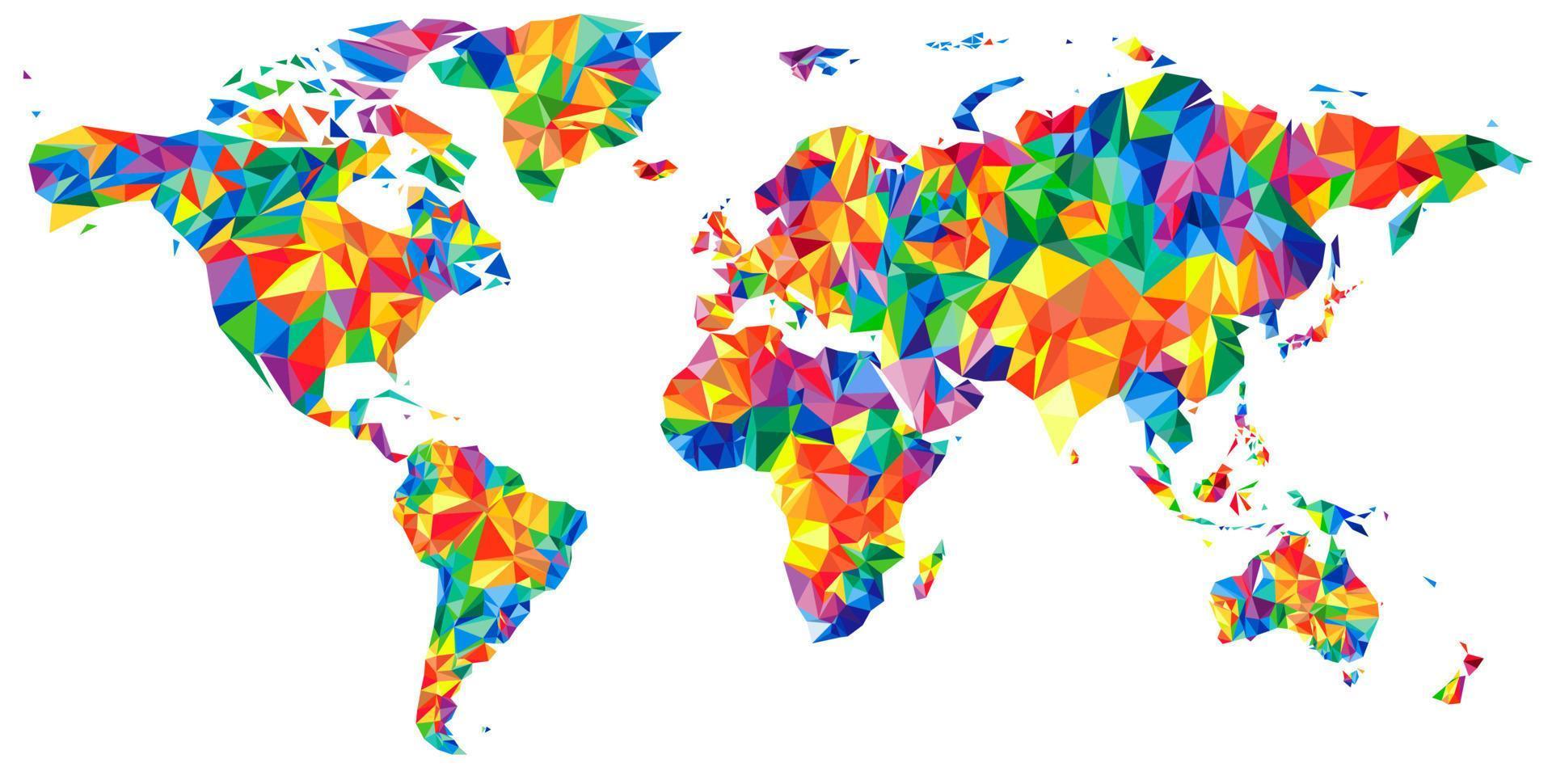 Abstract continents World Map from triangles. Origami style. Vector polygonal pattern for your design. Pro Vector