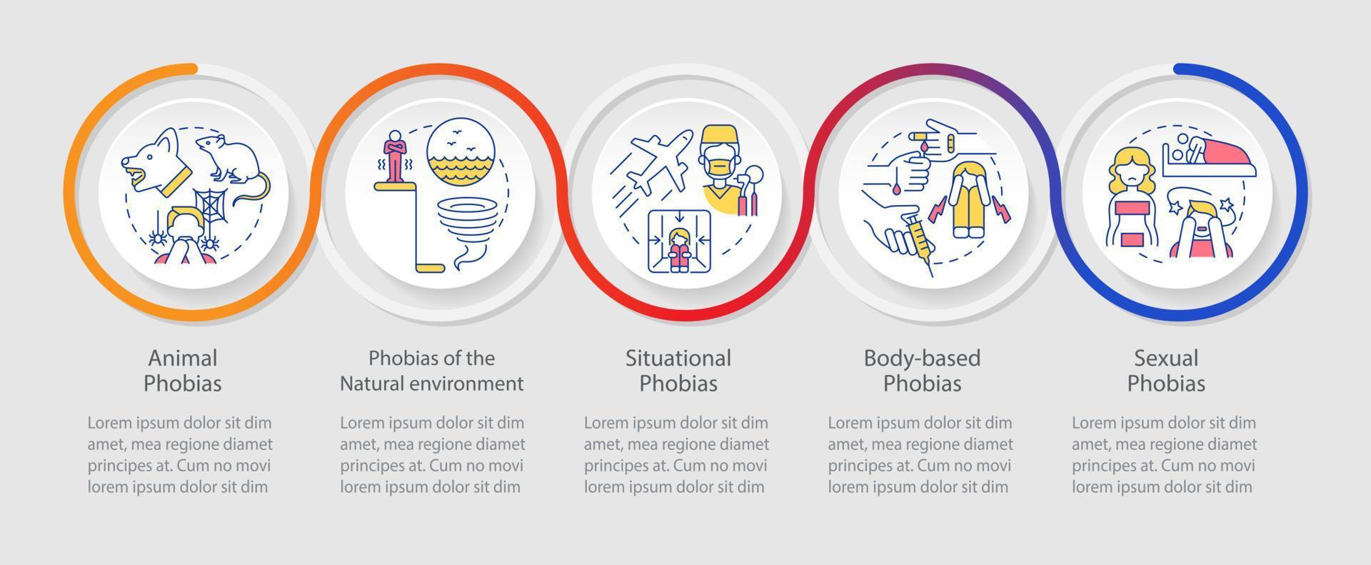 Specific phobias loop infographic template. Anxiety disorder. Data visualization with 5 steps. Process timeline info chart. Workflow layout with line icons. Pro Vector