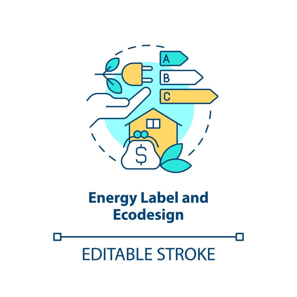 Energy label and ecodesign concept icon. Appliance indicator. Energy efficiency abstract idea thin line illustration. Isolated outline drawing. Editable stroke. Pro Vector
