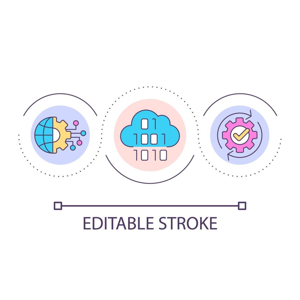 Global digital information storage loop concept icon. Online data. Virtual cloud usage abstract idea thin line illustration. Isolated outline drawing. Editable stroke. Pro Vector