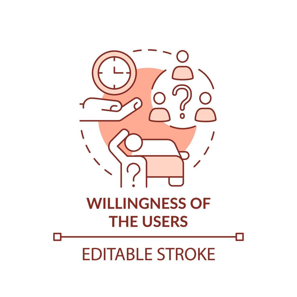 Willingness of users red concept icon. Change customer habits. Maas issue abstract idea thin line illustration. Isolated outline drawing. Editable stroke. Pro Vector