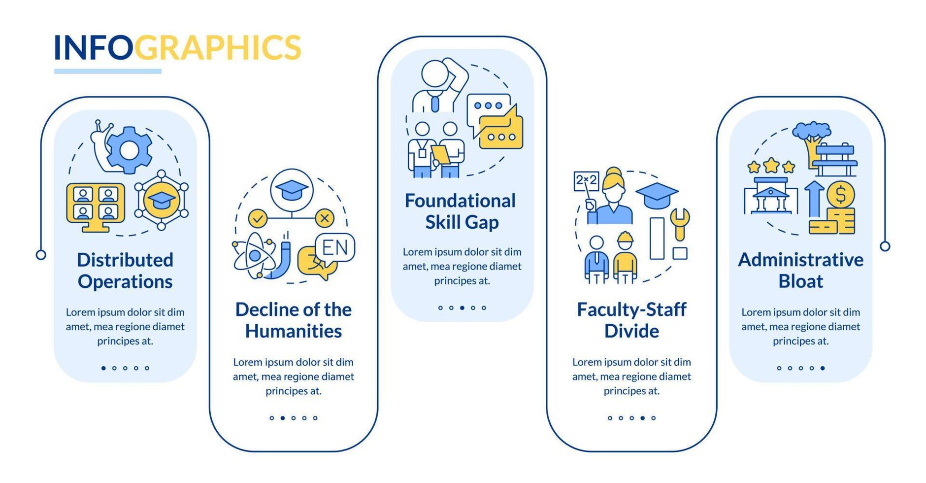 Problems in higher education blue rectangle infographic template. Data visualization with 5 steps. Editable timeline info chart. Workflow layout with line icons. Pro Vector