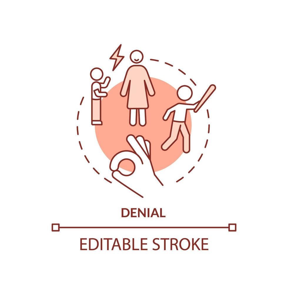 Denial red concept icon. Abusive behavior. Feature of dysfunctional families abstract idea thin line illustration. Isolated outline drawing. Editable stroke. Pro Vector