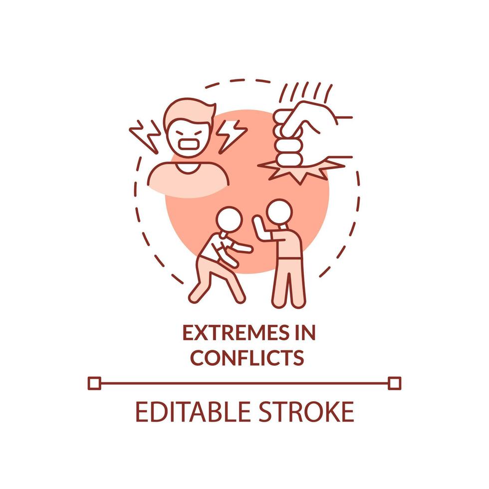 Extremes in conflicts red concept icon. Feature of dysfunctional families abstract idea thin line illustration. Isolated outline drawing. Editable stroke. Pro Vector