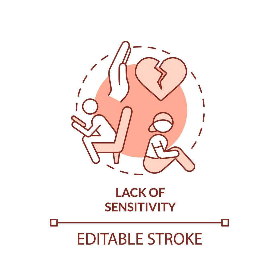 Lack of sensitivity red concept icon. Feature of dysfunctional families abstract idea thin line illustration. Isolated outline drawing. Editable stroke. Pro Vector