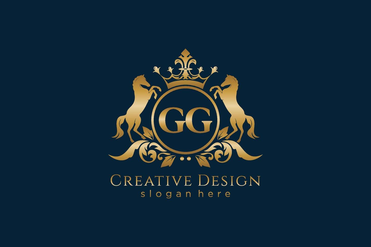 initial GG Retro golden crest with circle and two horses, badge template with scrolls and royal crown - perfect for luxurious branding projects Pro Vector and Pro SVG