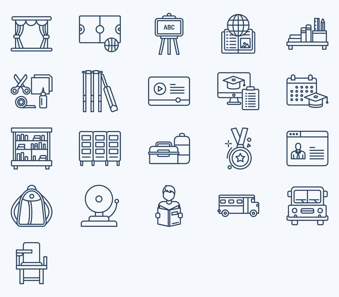 Simple icon set of School and academy Vector Line Icons. Contains such Icons as bag, book, Student, class, experiment and more web icons set. Collection of vector set. 512x512 Pixel Perfect. Pro Vector