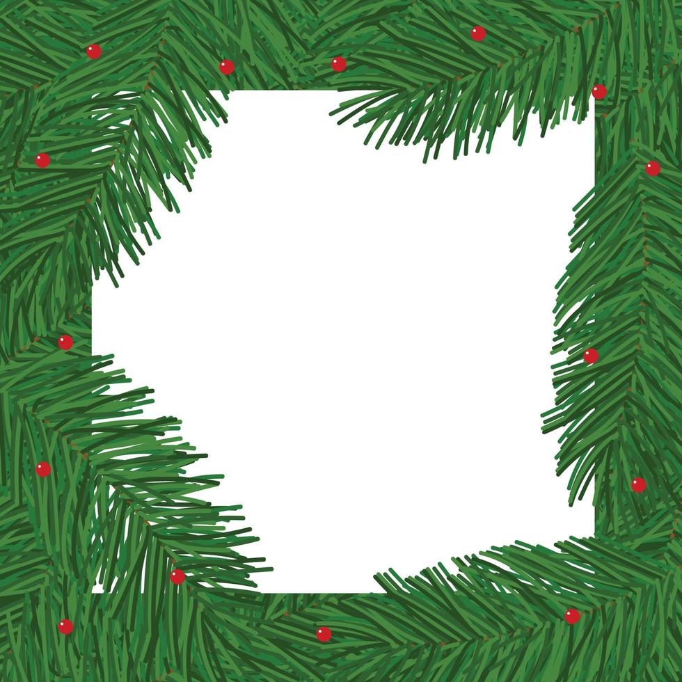 Frame background with spruce branch and red berry for Christmas card. Frame with place for text. Vector illustration Pro Vector