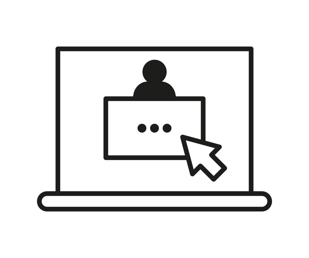 Danger theft personal data and password on computer, online scam of hacker, line icon. Cheating on internet, covert crime swindler. Social media fraud of thief, stealing. Vector outline illustration Pro Vector