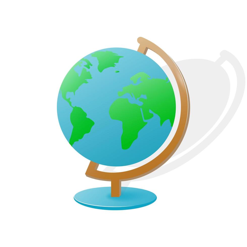 Globe on stand isolated on white background. A visual aid is a model of the globe, usually rotating on a stand. Vector illustration. Pro Vector