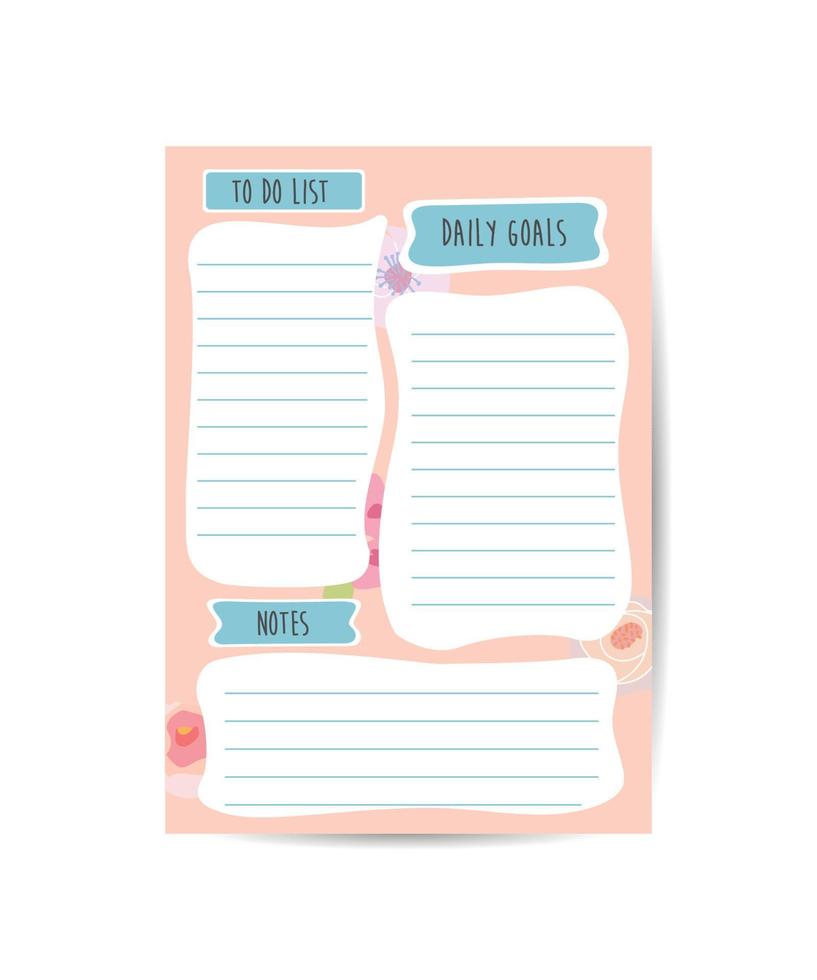 Daily Planner Template Organizer and Schedule with place for Notes Goals and To Do List Template design Pro Vector