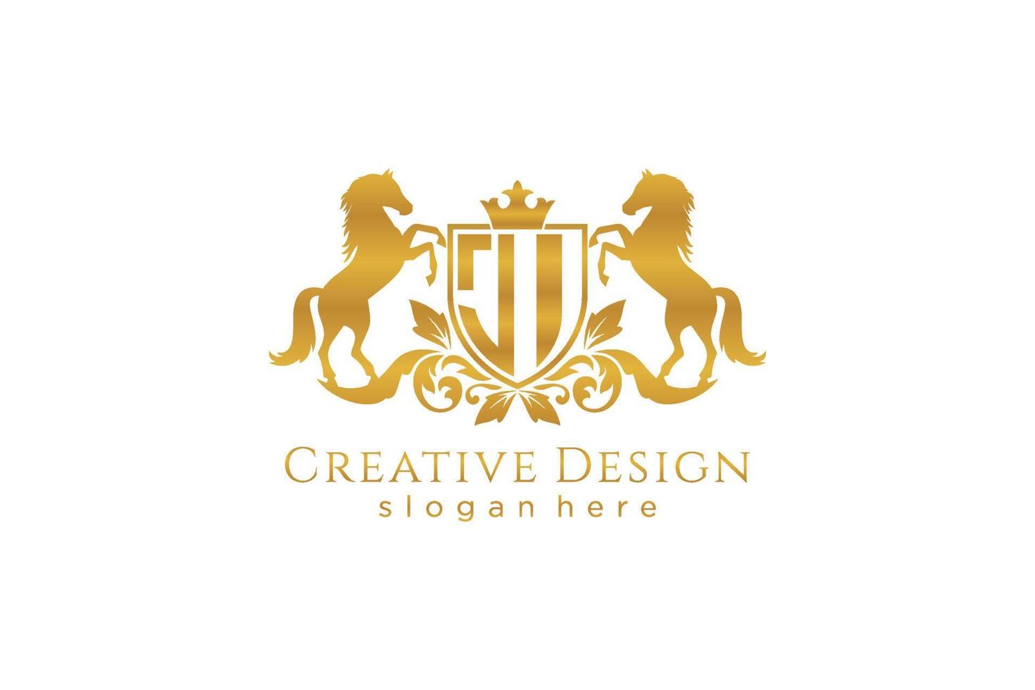 initial JI Retro golden crest with shield and two horses, badge template with scrolls and royal crown - perfect for luxurious branding projects Pro Vector and Pro SVG