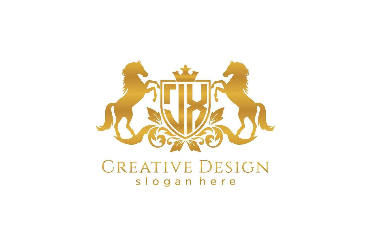 initial JX Retro golden crest with shield and two horses, badge template with scrolls and royal crown - perfect for luxurious branding projects Pro Vector and Pro SVG