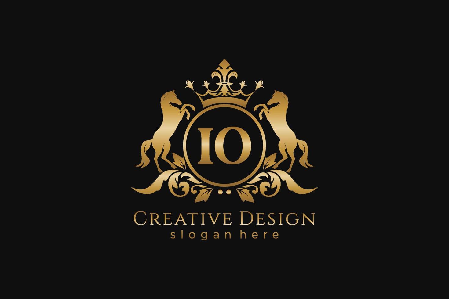 initial IO Retro golden crest with circle and two horses, badge template with scrolls and royal crown - perfect for luxurious branding projects Pro Vector and Pro SVG