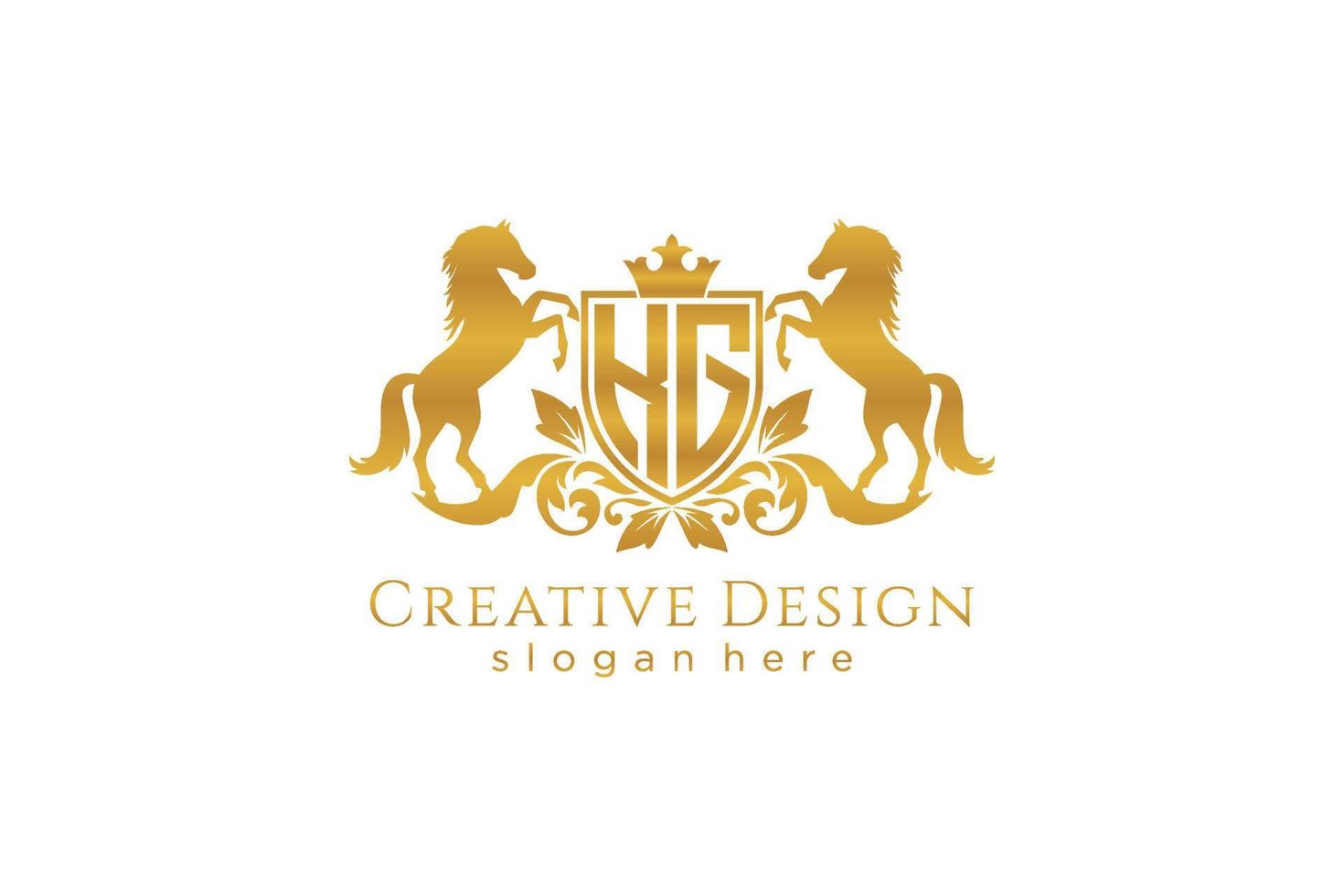 initial KG Retro golden crest with shield and two horses, badge template with scrolls and royal crown - perfect for luxurious branding projects Pro Vector and Pro SVG