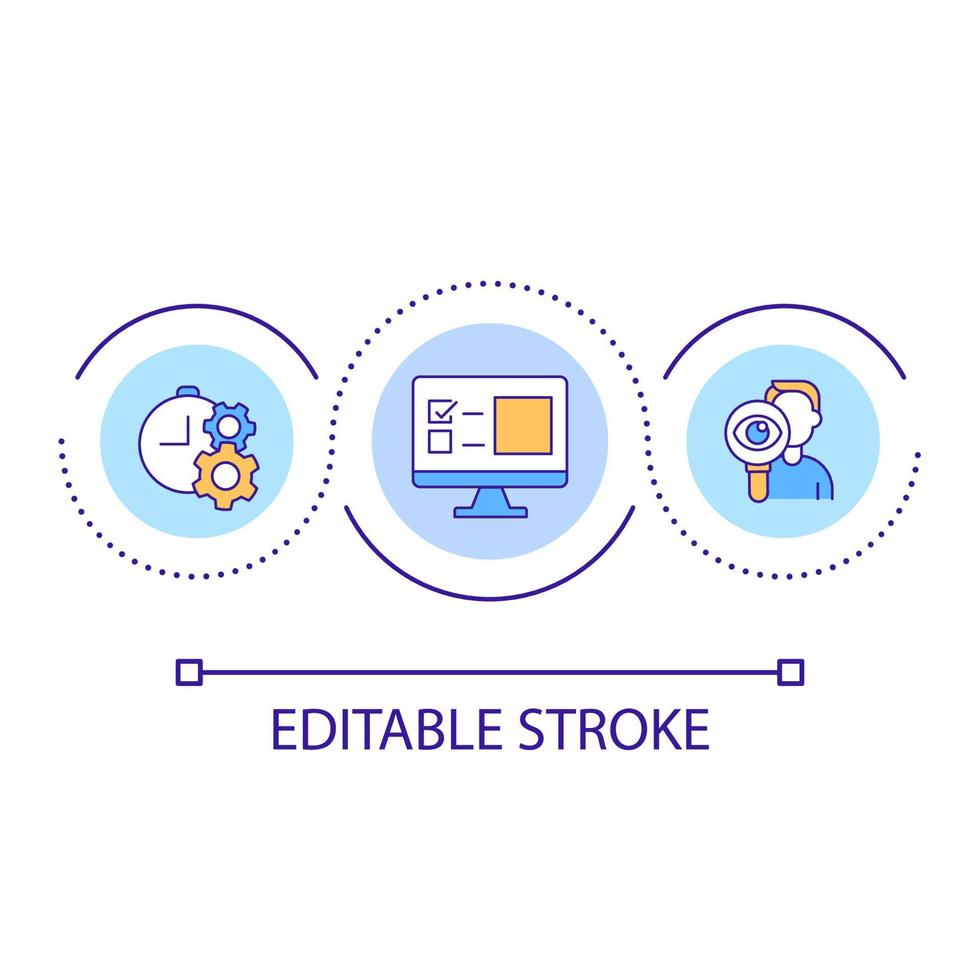 Regular computer checkup loop concept icon. Digital technology setup. Analytics data abstract idea thin line illustration. Isolated outline drawing. Editable stroke. Pro Vector