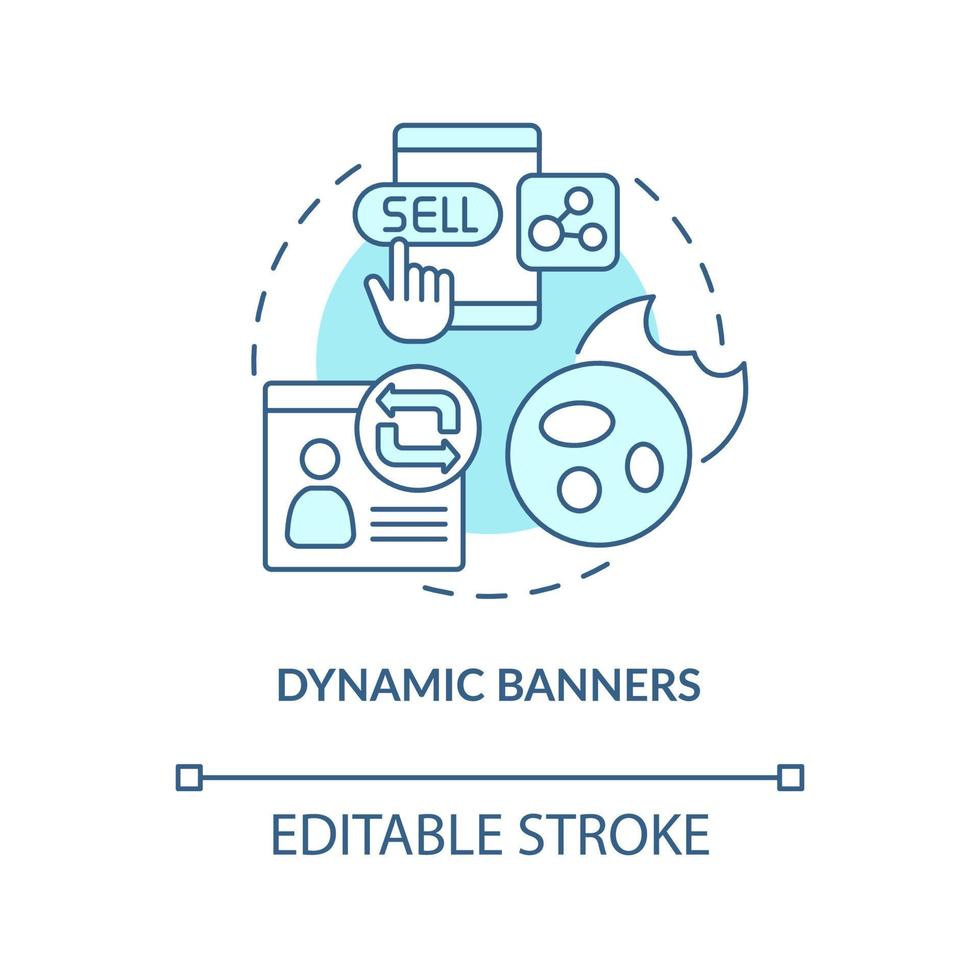 Dynamic banners turquoise concept icon. Way to use dynamic content abstract idea thin line illustration. Creative ads. Isolated outline drawing. Editable stroke. Pro Vector