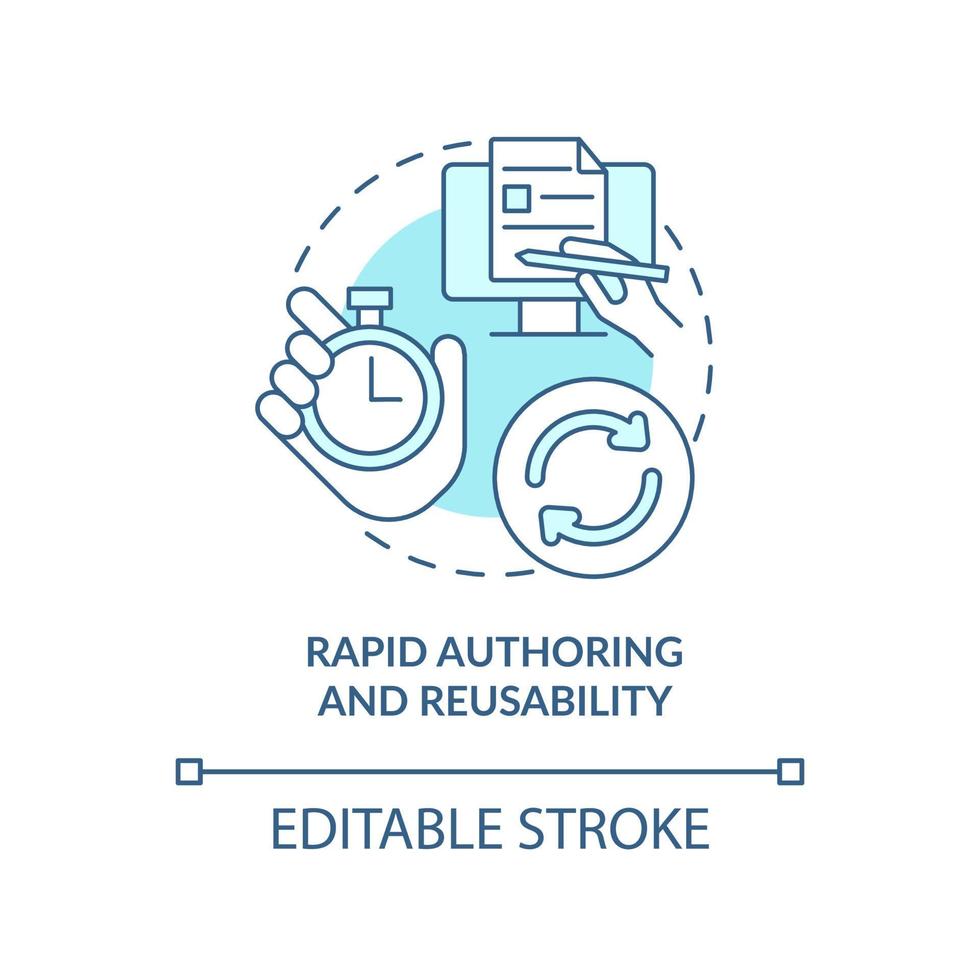 Rapid authoring and reusability turquoise concept icon. Learning content management abstract idea thin line illustration. Isolated outline drawing. Editable stroke. Pro Vector