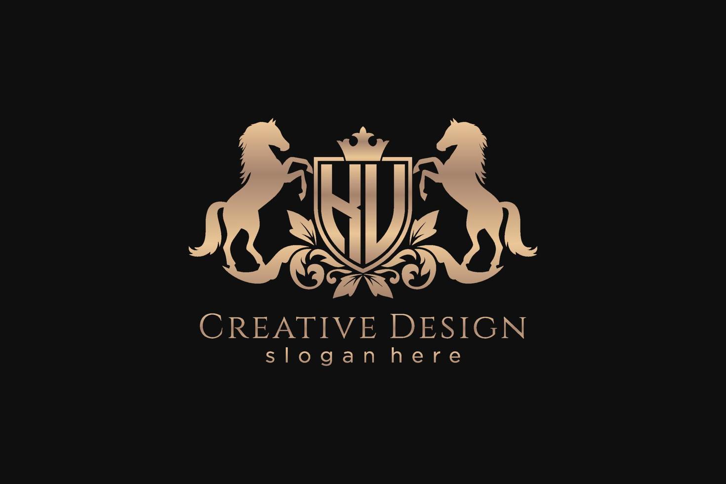 initial KU Retro golden crest with shield and two horses, badge template with scrolls and royal crown - perfect for luxurious branding projects Pro Vector and Pro SVG