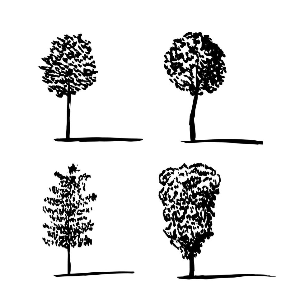 Different trees sketch set. Beech, birsh and pine tree vector sketch Pro Vector
