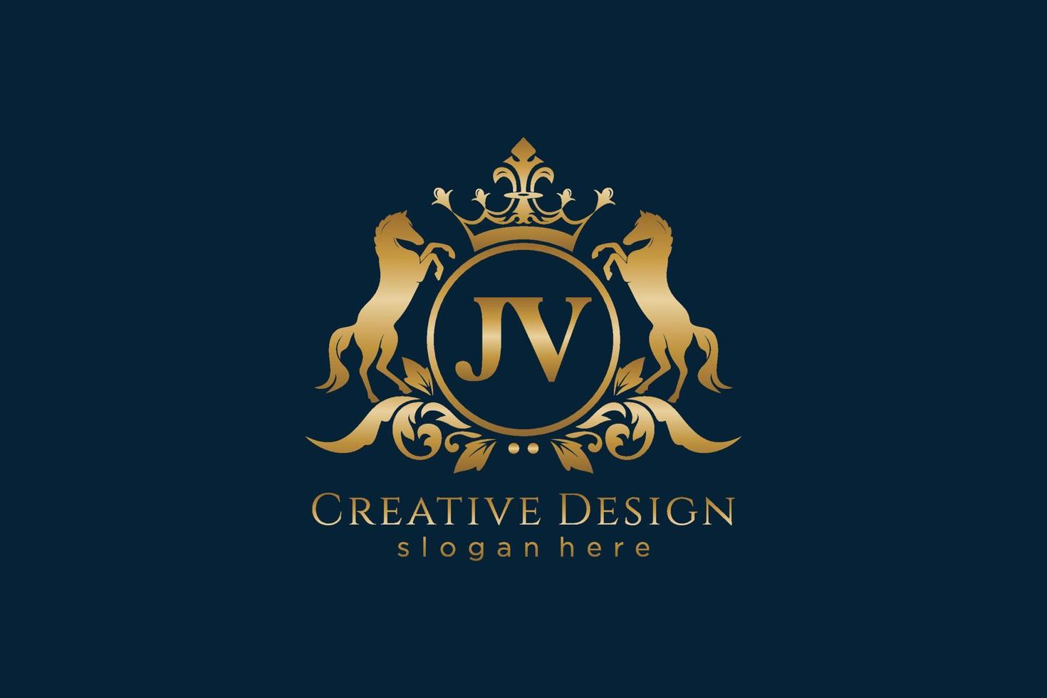 initial JV Retro golden crest with circle and two horses, badge template with scrolls and royal crown - perfect for luxurious branding projects Pro Vector and Pro SVG