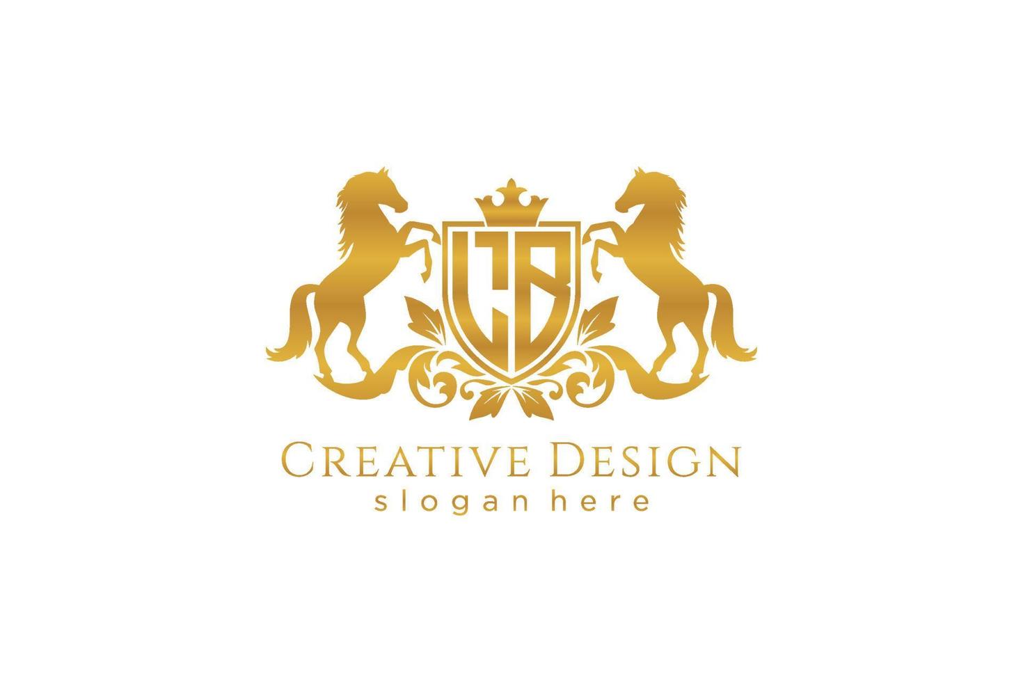 initial LB Retro golden crest with shield and two horses, badge template with scrolls and royal crown - perfect for luxurious branding projects Pro Vector and Pro SVG