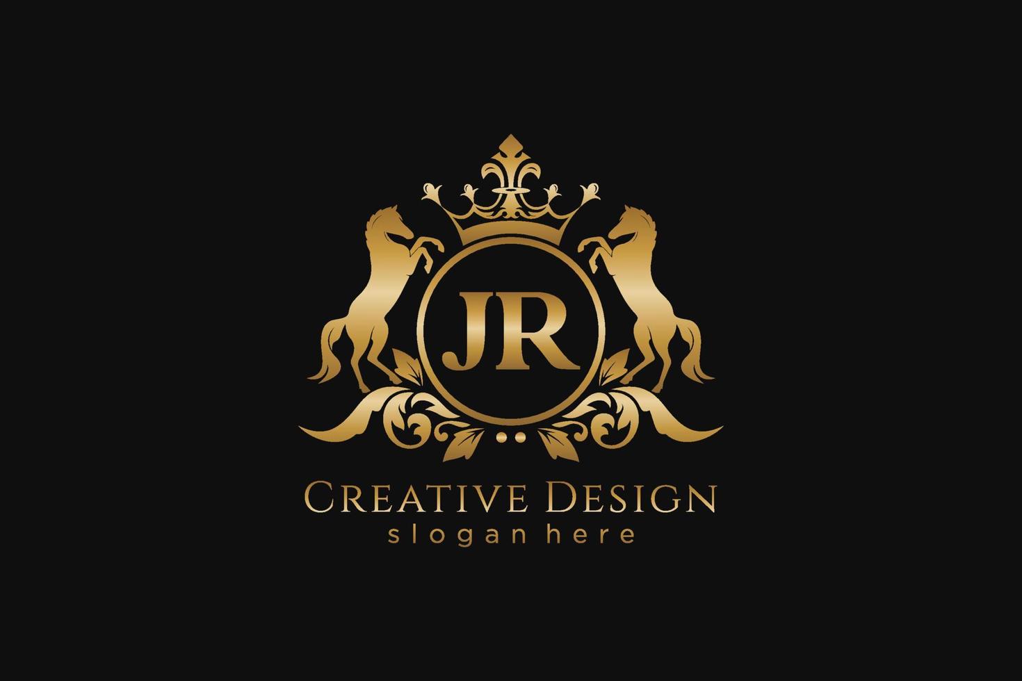 initial JR Retro golden crest with circle and two horses, badge template with scrolls and royal crown - perfect for luxurious branding projects Pro Vector and Pro SVG