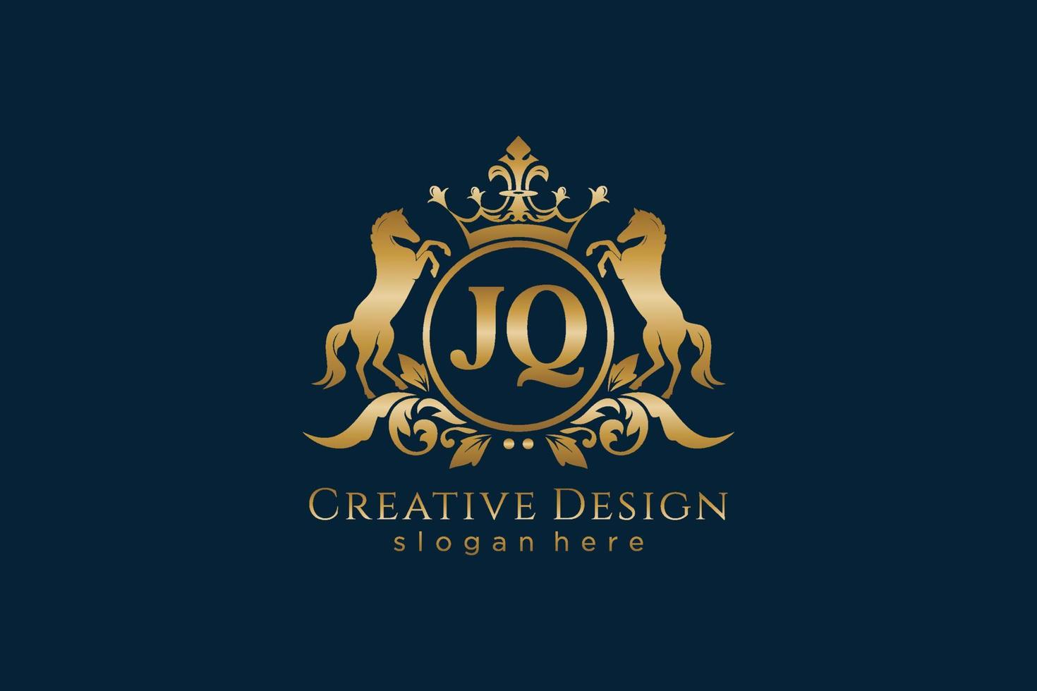 initial JQ Retro golden crest with circle and two horses, badge template with scrolls and royal crown - perfect for luxurious branding projects Pro Vector and Pro SVG