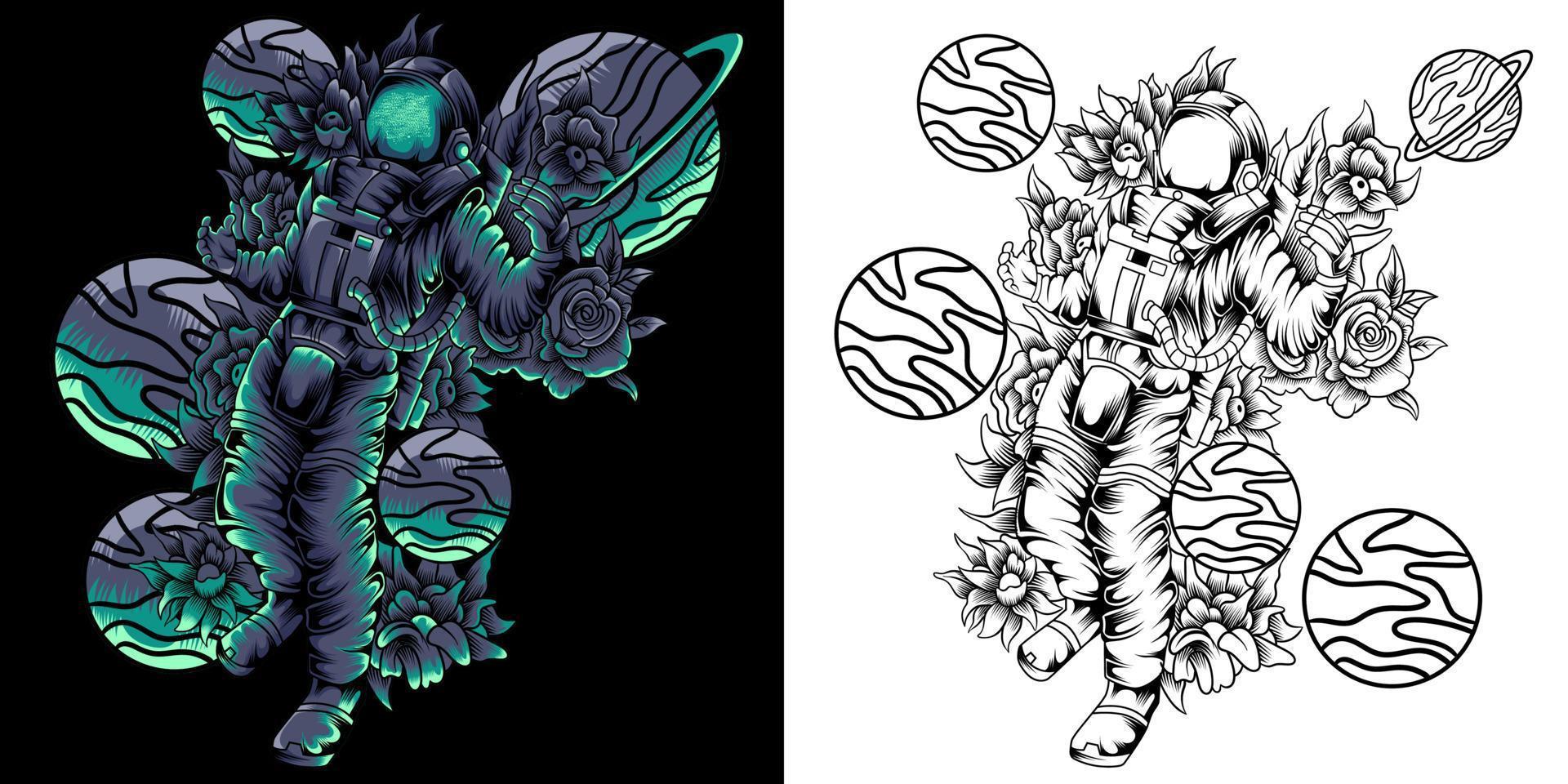 Astronaut floating in the outer space wearing space suit Pro Vector