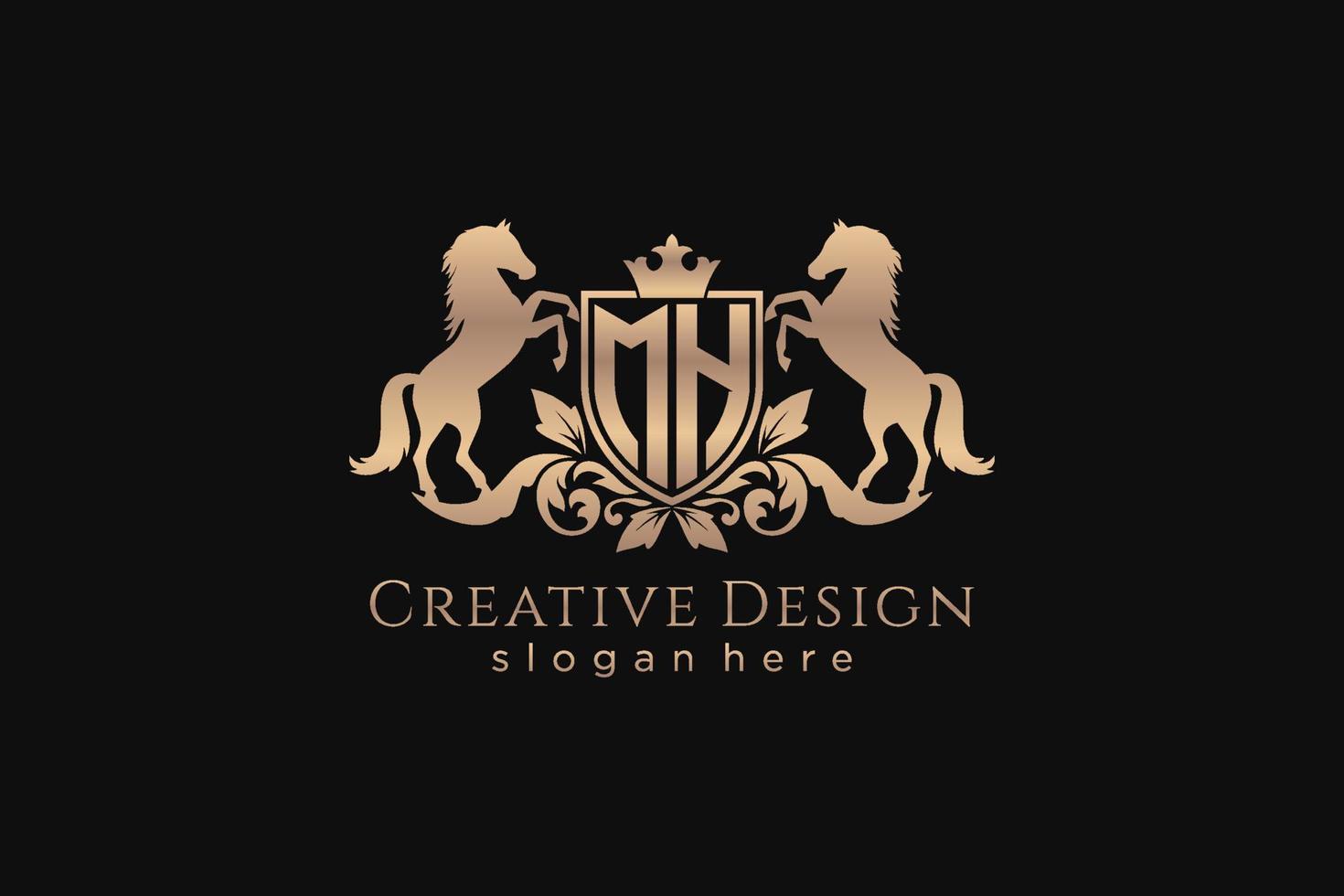 initial MH Retro golden crest with shield and two horses, badge template with scrolls and royal crown - perfect for luxurious branding projects Pro Vector and Pro SVG