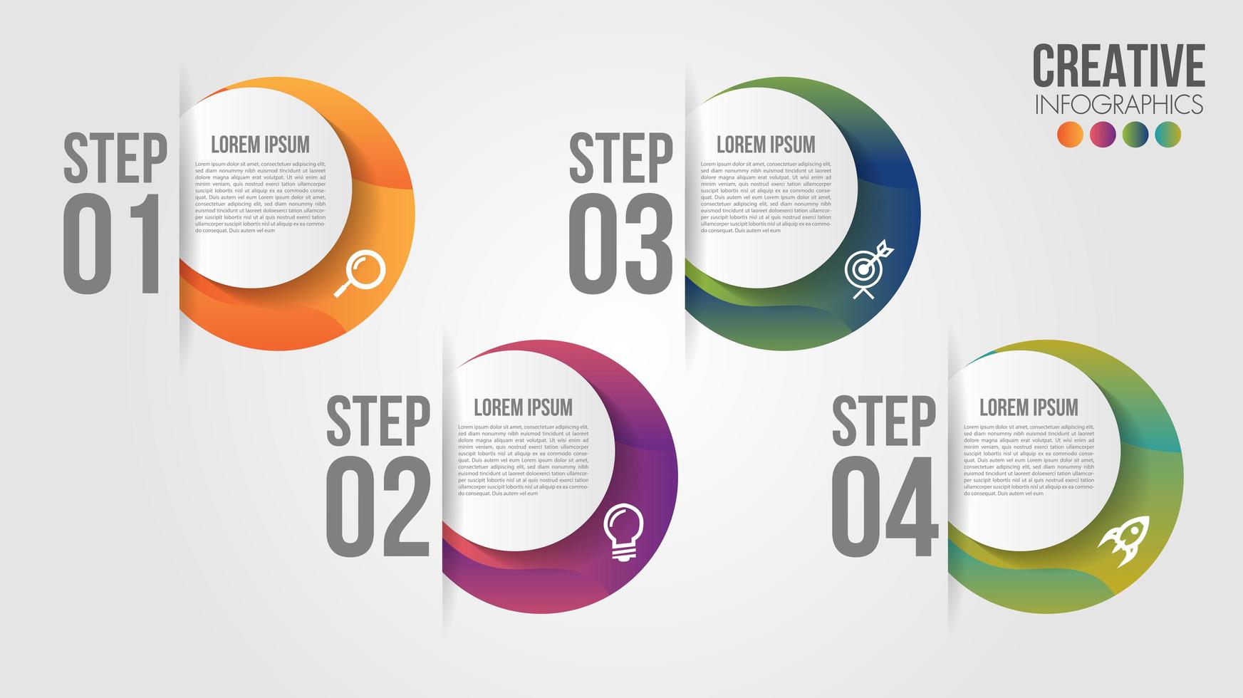Infographic with 4 gradient circle options in slits vector