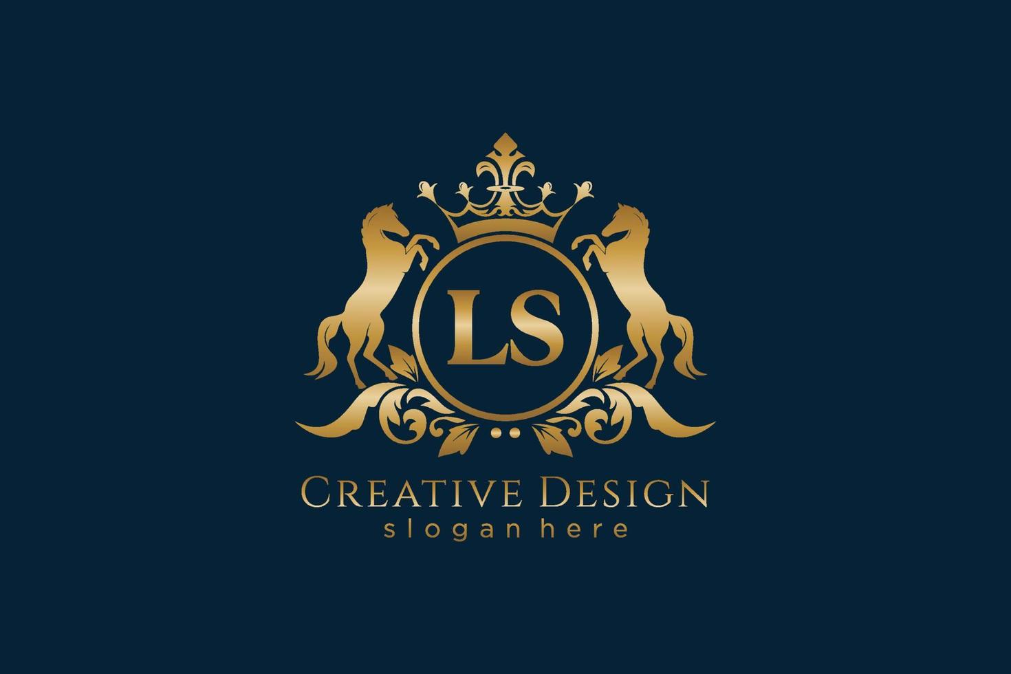initial LS Retro golden crest with circle and two horses, badge template with scrolls and royal crown - perfect for luxurious branding projects Pro Vector and Pro SVG