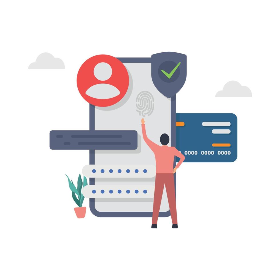 Security system in smartphone. Mobile with passcode and face recognition app illustration. Pro Vector