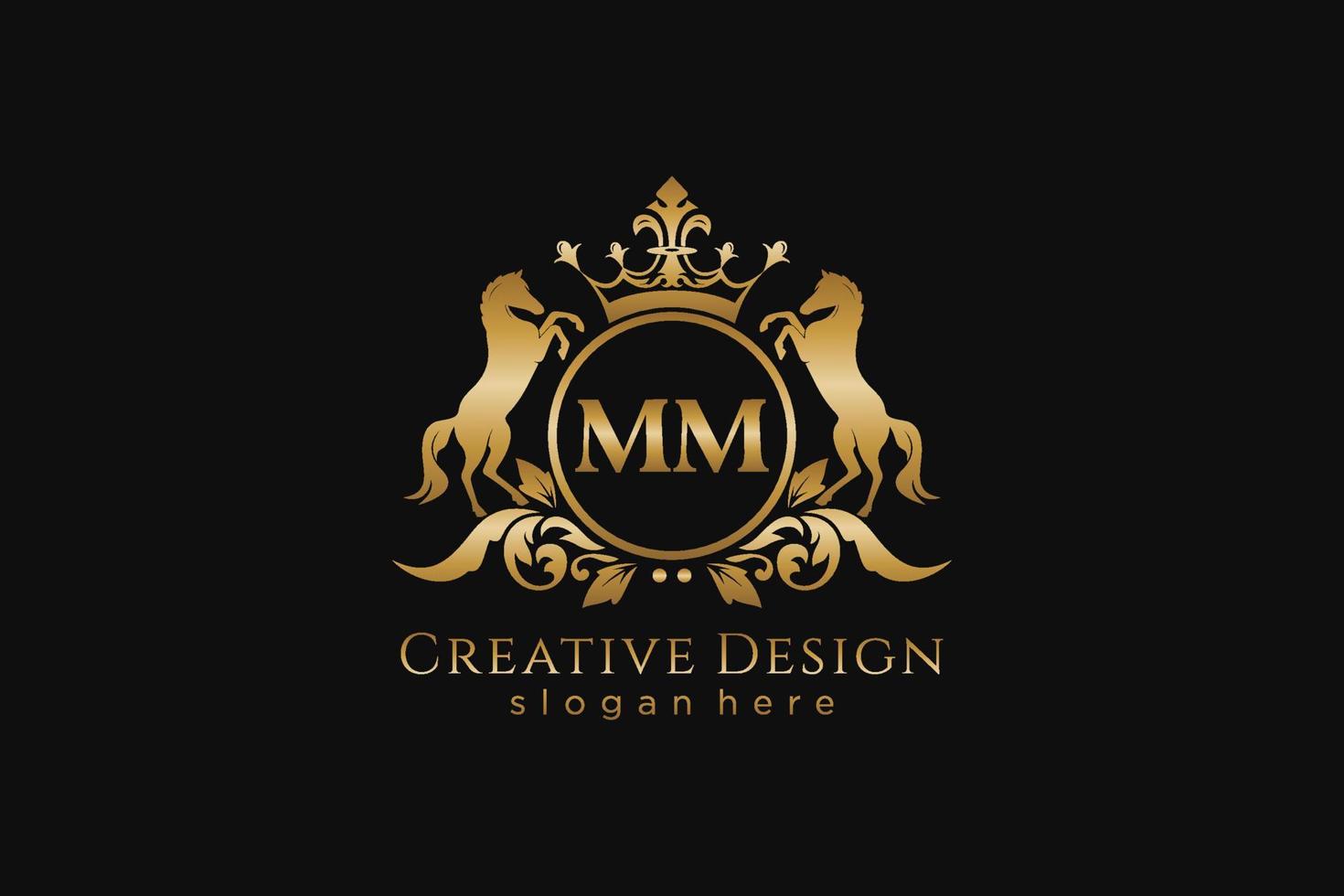 initial MM Retro golden crest with circle and two horses, badge template with scrolls and royal crown - perfect for luxurious branding projects Pro Vector and Pro SVG