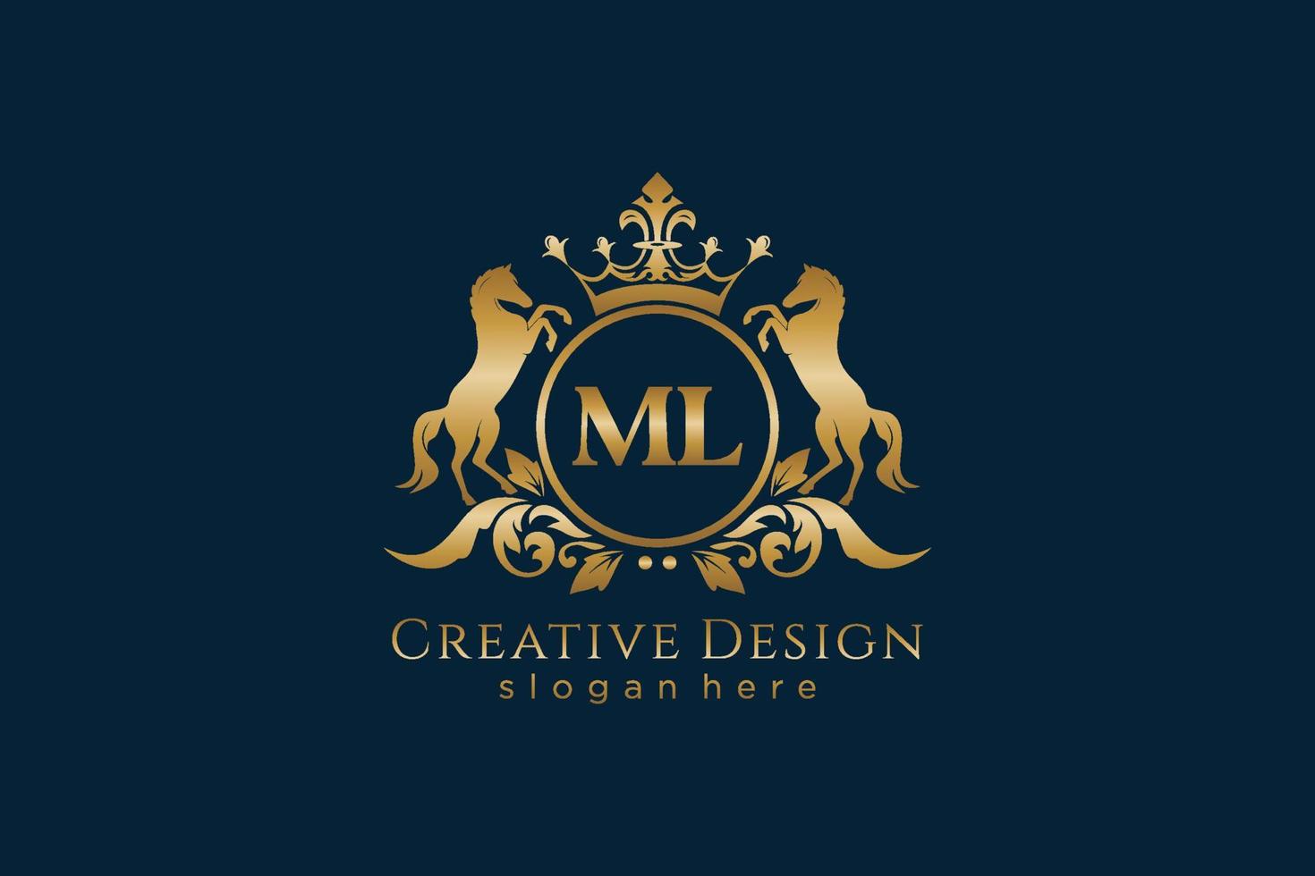 initial ML Retro golden crest with circle and two horses, badge template with scrolls and royal crown - perfect for luxurious branding projects Pro Vector and Pro SVG
