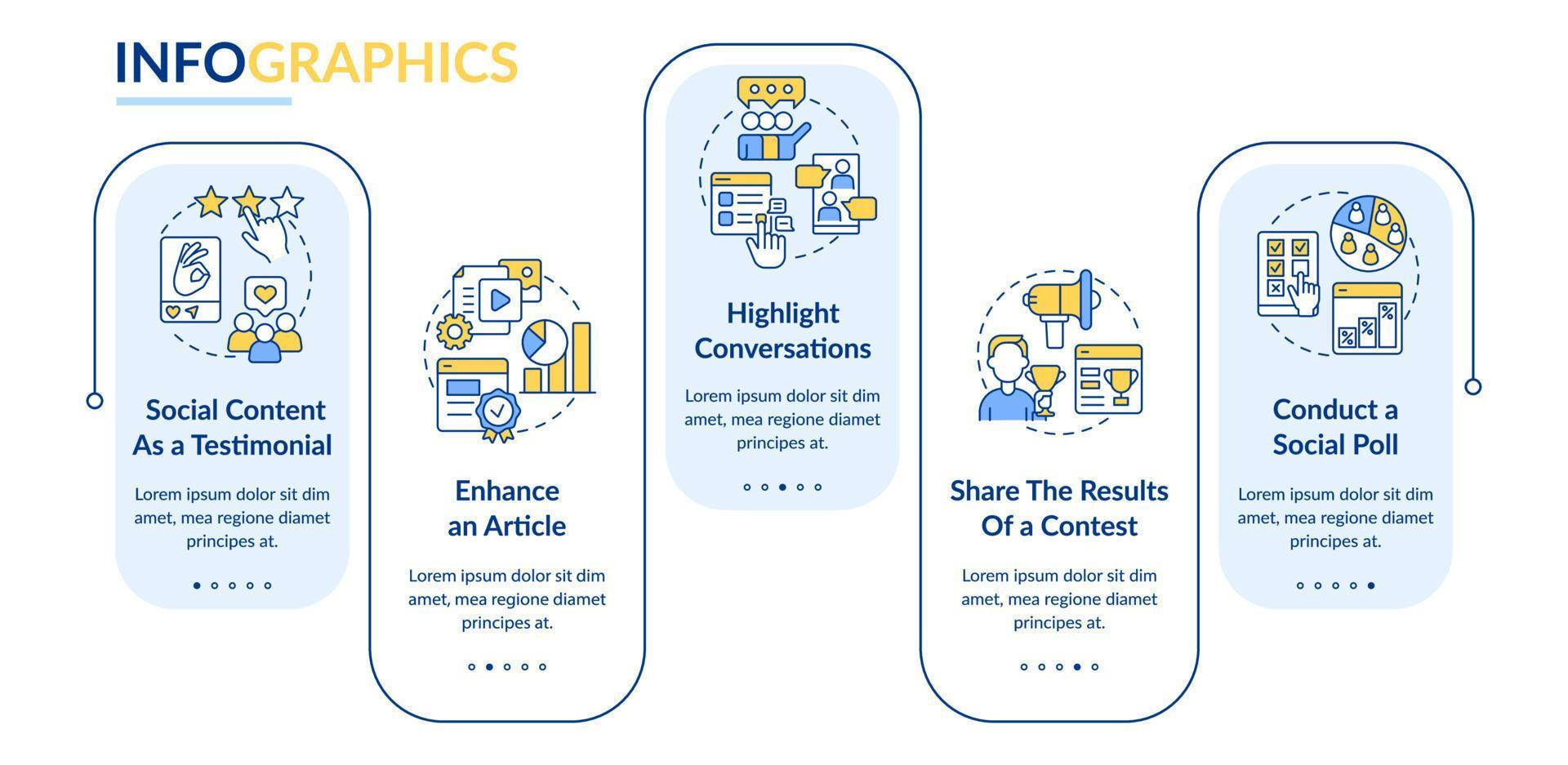 Embeddedness in social networks rectangle infographic template. Polls. Data visualization with 5 steps. Editable timeline info chart. Workflow layout with line icons. Pro Vector