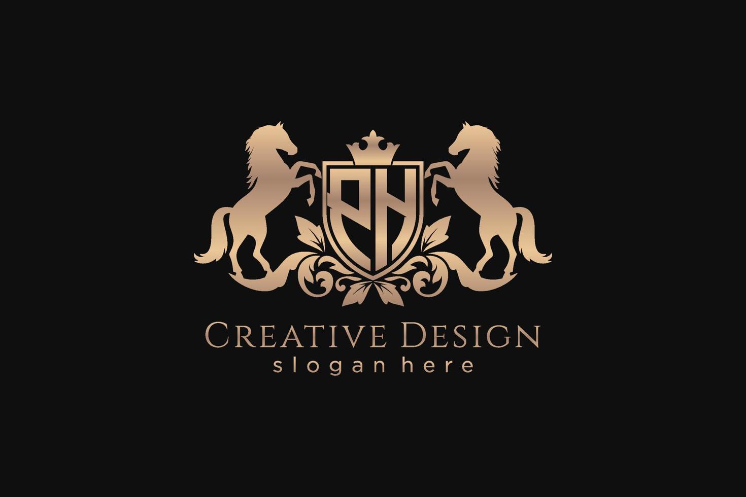 initial PH Retro golden crest with shield and two horses, badge template with scrolls and royal crown - perfect for luxurious branding projects Pro Vector and Pro SVG