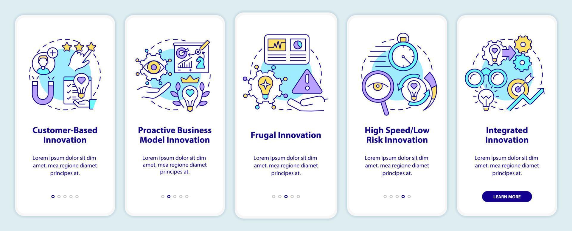 Future innovation concepts onboarding mobile app screen. Customer-based walkthrough 5 steps graphic instructions pages with linear concepts. UI, UX, GUI template. Pro Vector