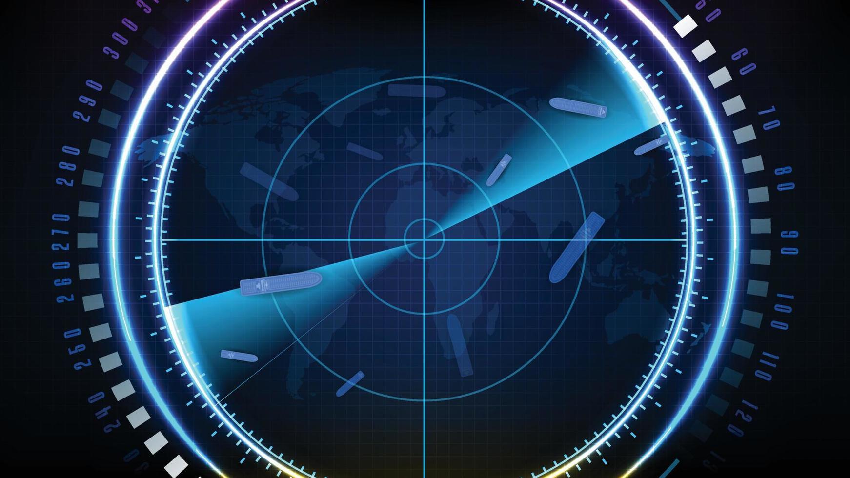 abstract background of futuristic technology screen scan radar shipping cargo ship route path with scan interface hud Pro Vector