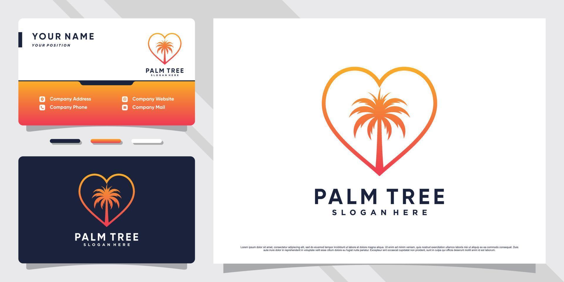 Palm tree icon logo design with heart shape element and business card template Pro Vector and Pro SVG