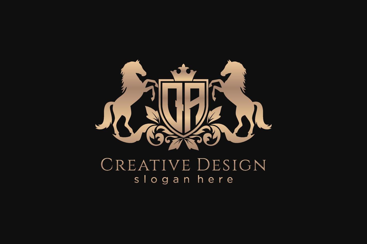 initial QA Retro golden crest with shield and two horses, badge template with scrolls and royal crown - perfect for luxurious branding projects Pro Vector and Pro SVG