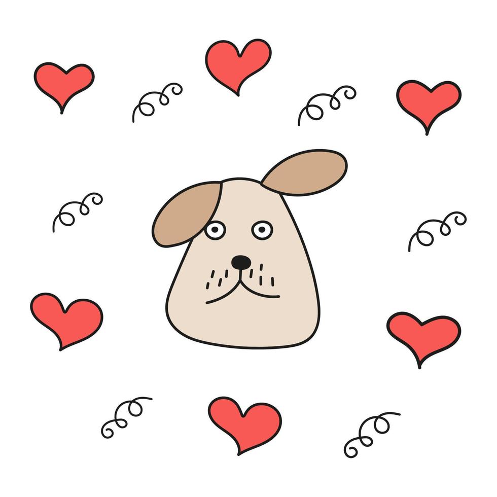 Dogs with beige hearts in style of doodles. Vector isolated image for use in design of children's print or website themes Pro Vector