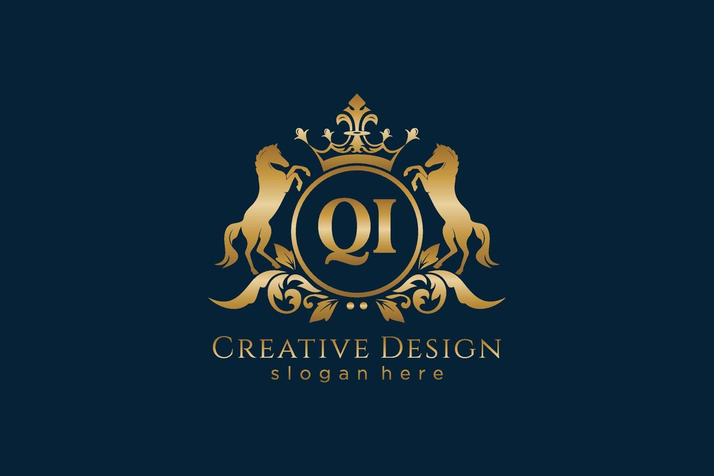 initial QI Retro golden crest with circle and two horses, badge template with scrolls and royal crown - perfect for luxurious branding projects Pro Vector and Pro SVG